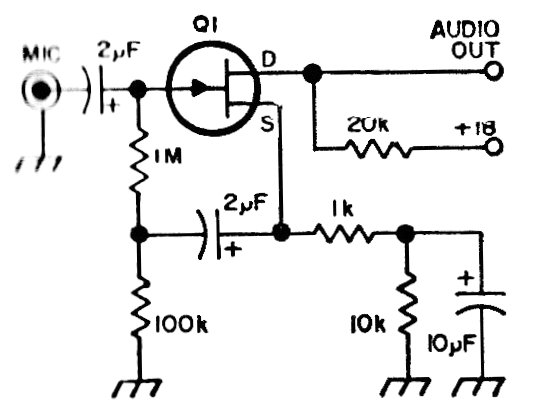 Este circuito, de configuración similar a muchos que podemos encontrar en esta sección, fue sugerido por un manual de la década de los 70. Cualquier JFET de uso general se puede utilizar como el MPF102 o BF245 el consumo es muy bajo.