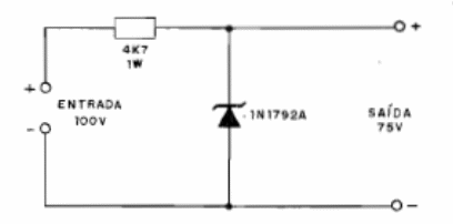 Este circuito regula la tensión de salida de una fuente de al menos 100 V en 75 V, con una corriente máxima de 10 mA. El circuito utiliza un zener de alta tensión para 75 V y zeners de tensiones cercanas pueden ser utilizados.