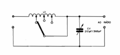 Este circuito tiene por finalidad mejorar el acoplamiento de una antena externa a un receptor de ondas cortas para obtener una mejor recepción. La bobina está formada por 40 espiras con tomas de 10 en 10 espiras. El hilo utilizado es el AWG 26 o 26 y la forma es un bastón de ferrita de 1 cm de diámetro y de 10 a 20 cm de longitud. El capacitor variable fue retirado de un viejo receptor de AM.