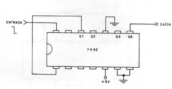 Este circuito de shield divide la frecuencia de una señal TTL por 12. Con la división adicional por 5 podemos obtener un pulso por segundo a partir de la red de 60 Hz. La entrada, sin embargo, debe ser una señal rectangular. Para trabajar con frecuencias más altas, se pueden emplear componentes de subfamilia TTL.