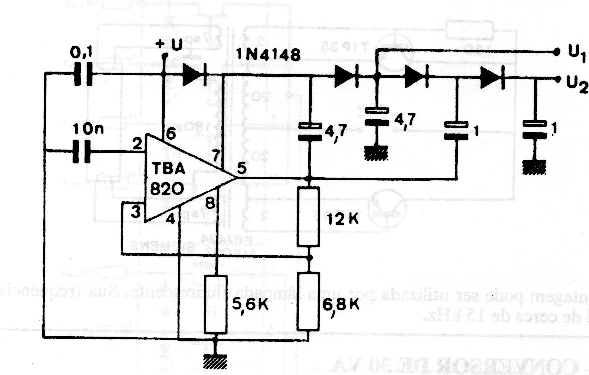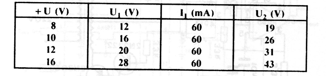 Este circuito capaz de elevar una tensión con tenia según la tabla dada junto al diagrama utiliza un operacional que en realidad es un amplificador de audio de potencia del orden de 1 W como máximo. El circuito no utiliza una fuente simétrica y la corriente de salida es baja.