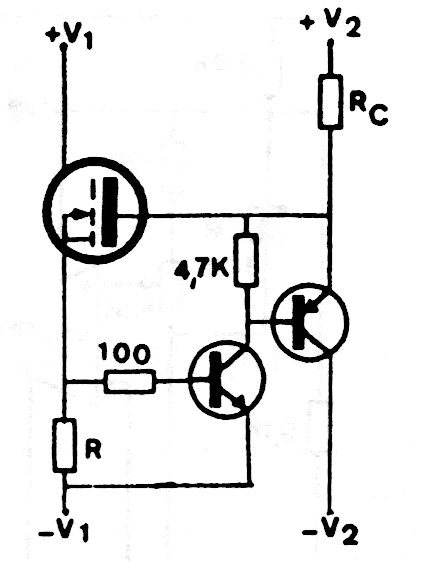 Esta fuente es más elaborada que la que se siegue pues usa dos transistores. La fuente es simétrica y los resistores se determinan en función de la carga y de la cadena deseada.