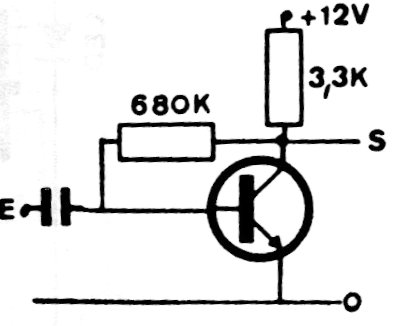 Este paso con polarización de sólo una resistencia puede utilizar cualquier transistor de uso general. La tensión puede variar entre 3 y 12 V cambiando el valor del resistor de base.