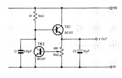 Este regulador de tensión paralelo fue encontrado en una revista inglesa de 1976. El circuito puede todavía ser montado si cambiamos los transistores por los BC547 o BC548. La corriente máxima es del orden de 50 mA y la tensión de salida se ajusta en el trimpot. Se trata de un circuito ideal para proporcionar tensiones de salida de 1 o 1,5 V para alimentación de integrados como el ZN414.