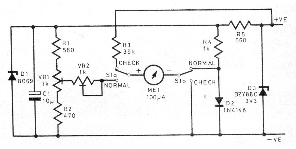 Encontramos este circuito en una revista inglesa de 1983, pero se puede montar con facilidad aún hoy, pues todos los componentes son comunes. El sensor es un diodo común y la escala del instrumento puede ser calibrada teniendo como referencia un termómetro común. La alimentación debe realizarse con dos pilas pequeñas.