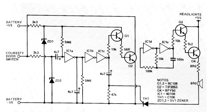 He encontrado este circuito en una revista inglesa de 1986. Todavía puede ser montado con facilidad, cambiando Q1 y Q3 por BC548, Q2 por el 2N3055 y Q4 por un TIP31. El SCR puede ser el TIC106. Los demás componentes no ofrecen mayores dificultades de obtención.