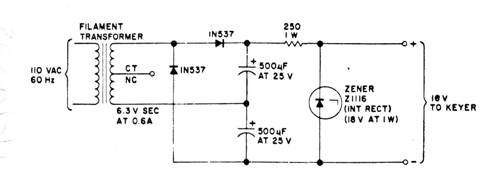 En la figura tenemos el modo de obtener una tensión de 18 V a partir de un transformador de 6,3 V con toma central La corriente depende del transformador y de los capacitores y la regulación es hecha por el diodo zener.