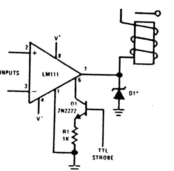 Este circuito es del manual del LM111 de los años 80. El componente no existe más, pero equivalentes con las mismas características pueden ser utilizados. El relé es del tipo sensible con baja corriente de accionamiento.