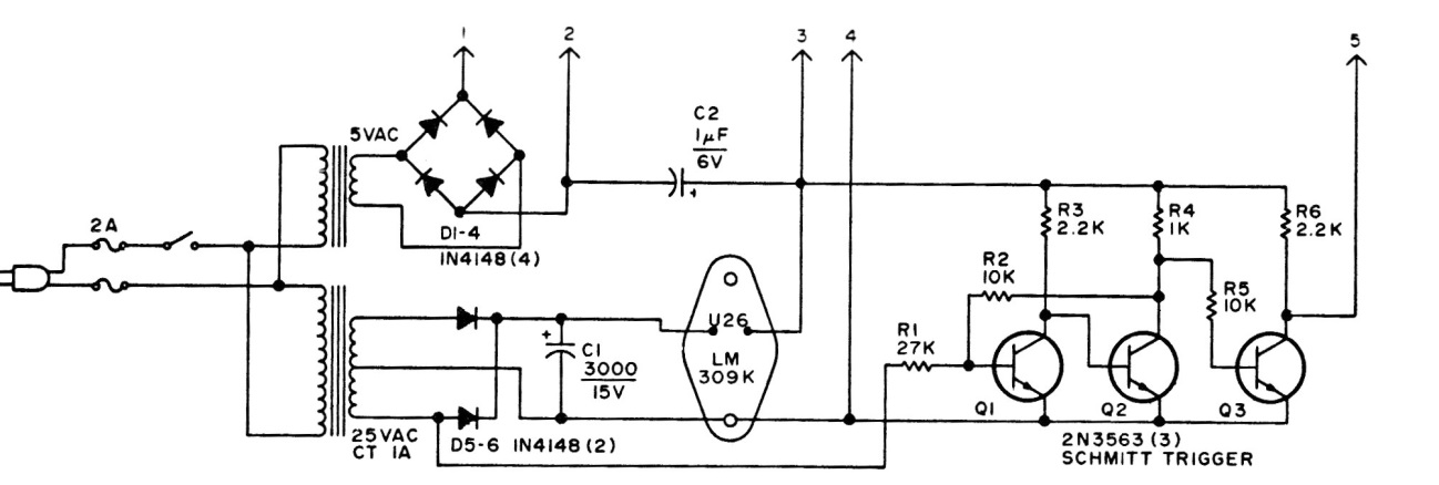 Esta fuente fue sugerida para la alimentación de un contador con válvulas tipo numitron, inusual actualmente. Observe el uso de dos transformadores. El regulador y los transistores deben montarse en disipadores de calor.