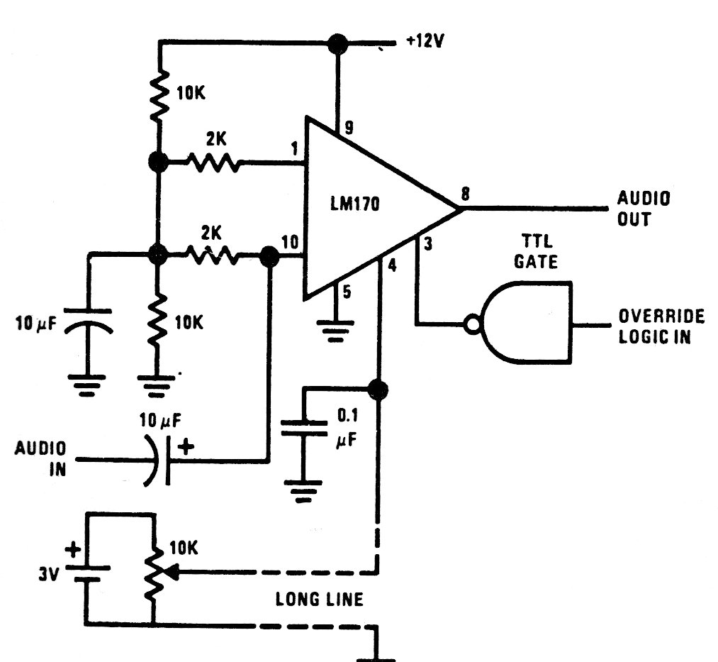 Encontramos este circuito en una antigua documentación americana. El circuito puede ser adaptado para aplicaciones modernas, ya que el circuito integrado usado es poco común en nuestros días.