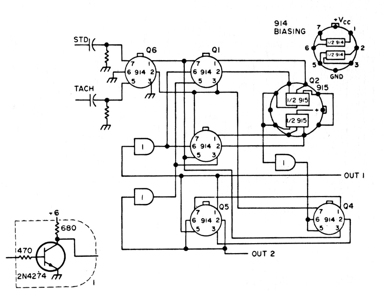 Este circuito también funciona como un detector de fase. Los componentes utilizados no son comunes. Encontramos esta configuración que puede ser adaptada para operar con componentes más modernos en una documentación americana de los años 80.