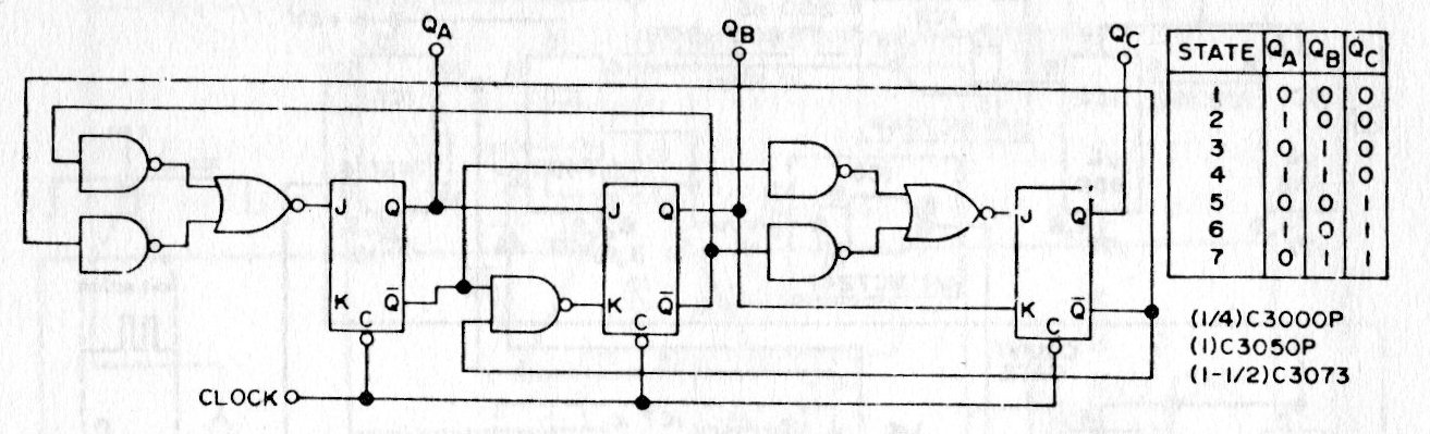Este divisor por 8 sincronizado por ser implementado con base en lógica TTL o CMOS según la aplicación deseada. El circuito es de una documentación americana y la velocidad máxima depende sólo de la lógica utilizada.