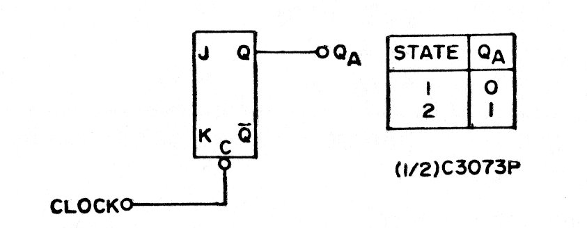 Este circuito que se aplica tanto a la lógica TTL como CMOS utiliza un flip-flop J-K y la frecuencia máxima depende de la lógica utilizada. El circuito es de una documentación antigua, pero totalmente válida en nuestros días.