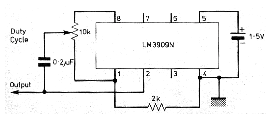 Este circuito se obtuvo en una práctica inalámbrica de 1978. Genera una señal rectangular de baja frecuencia y pequeña intensidad, pudiendo ser utilizado como un buen inyector de señales. El circuito es de ultra-bajo consumo, pudiendo ser alimentado por una sola pila durante meses.