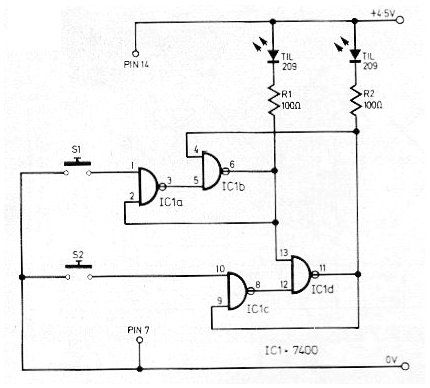 Este circuito fue obtenido en la revista inglesa de 1976. O circuito de circuitos de LEDs y debe ser alimentado con 5 V, pues o circuito integrado utilizado en TTL. Los LED son comunes.