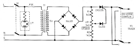 Este circuito se obtuvo en la revista inglesa de 1976. O el transformador de 1,5 a 2 A o SCR puede ser o TIC106. Los diodos pueden ser 1N4001, 1N4002 o equivalentes.