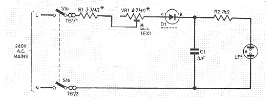 Este circuito fue obtenido una revista inglesa de 1981. La revista ya no existe, pero el circuito puede ser montado con facilidad, pues los componentes son comunes. El temporizador para algunos minutos utiliza una lámpara de neón que se apaga después del tiempo programado.