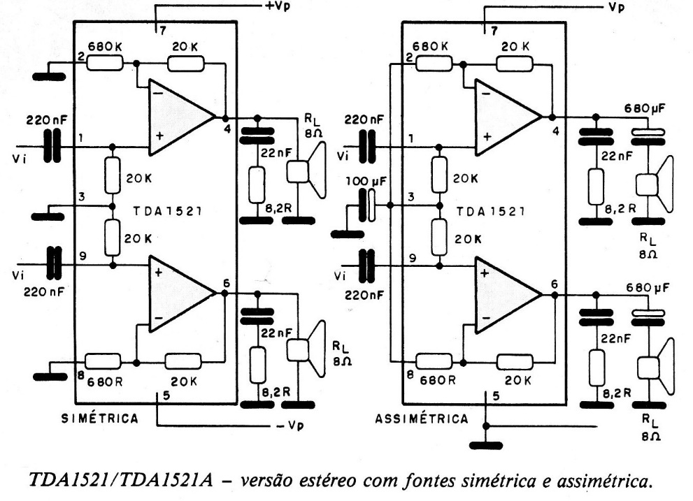 Amplificador de 2 canales de 5 W con el TDA1521 | Haga click en la imagen para ampliar |