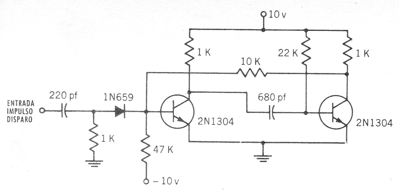 Este interesante circuito fue encontrado en una revista Argentina Radio Chassis Television de marzo de 1974. La revista ya no existe, pero el circuito todavía puede ser montado con transistores equivalentes como el 2N2222 o incluso BC548. Se pueden utilizar valores comerciales de componentes cercanos a los indicados. Observe que el circuito utiliza una fuente simétrica.