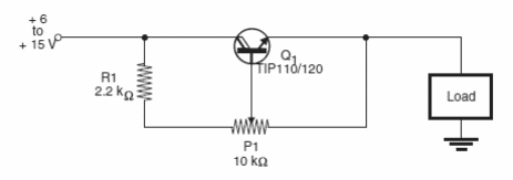 Este circuito, para motores hasta 1,5 A posibilita el uso de potenciómetros de alto valor y por lo tanto de baja disipación (comunes de carbono). El circuito es de mi libro Robotics, Mechatronics and Artificial Intelligence, publicado en los Estados Unidos. El circuito puede controlar la velocidad de los motores de 6 a 15 V regulando la intensidad de corriente en el circuito. El transistor debe montarse en un radiador de calor.