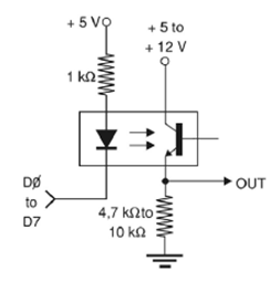 Con este circuito se puede obtener una señal de control para un dispositivo externo desde el puerto paralelo de un PC. El acoplador óptico puede ser de cualquier tipo y la alimentación depende de la lógica a controlar. El circuito fue obtenido de una publicación americana de mi autoría (Newton C. Braga). El valor del resistor de salida depende de la tensión de alimentación, debiendo ser obtenido experimentalmente.