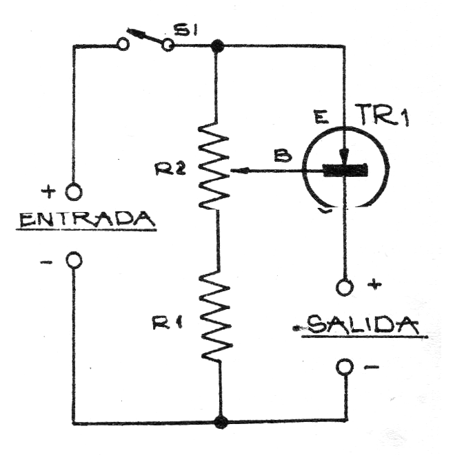 Con este circuito es posible controlar corrientes hasta unos 3 A en una carga, utilizando un potenciómetro de 100ohms de hilo. R1 es un resistor de 22 ohmios x 1 W. El transistor puede ser el TIP42 montado en disipador y la entrada puede ser hecha con tensiones de 3 a 12 V. El circuito, bastante conocido, fue obtenido en una publicación argentina de la década de 1970.