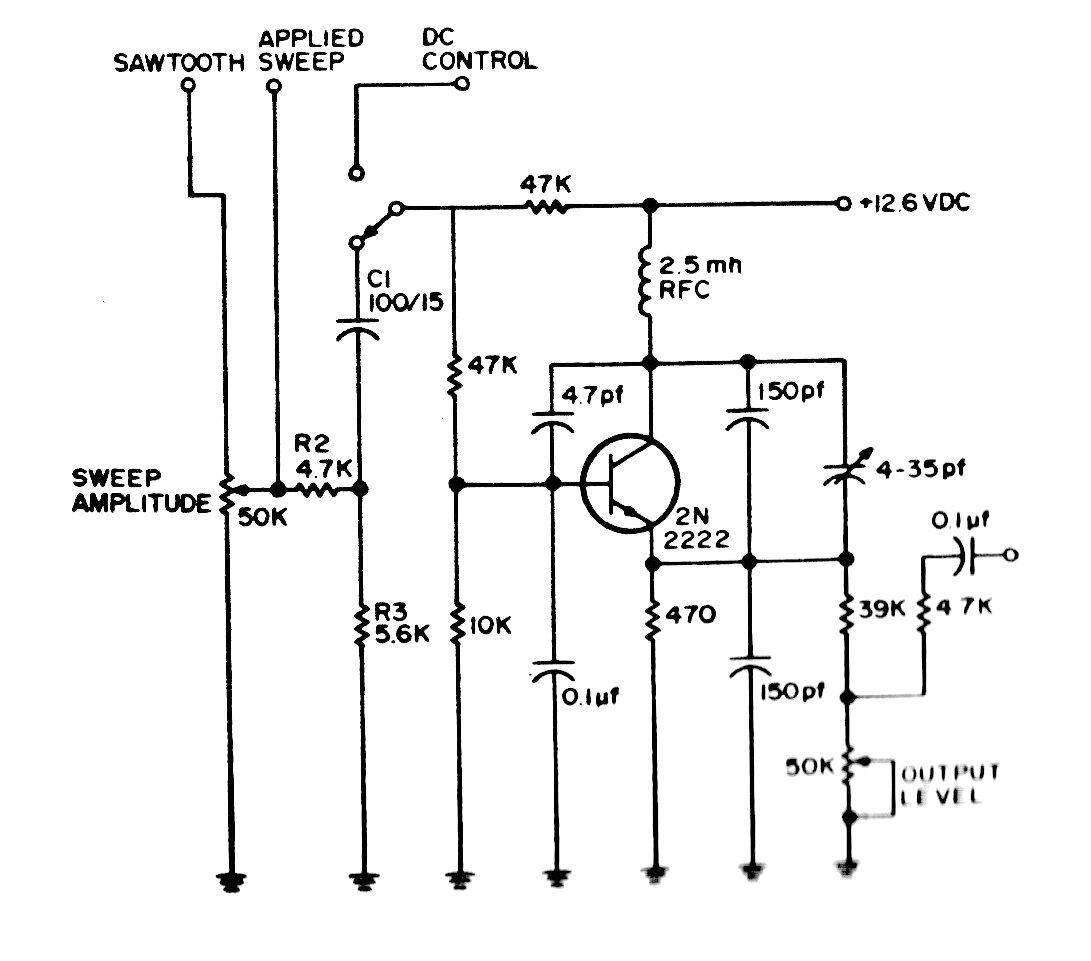 Este circuito se destina básicamente a la calibración de etapas de FIs de radios comunes usando el osciloscopio. El circuito es de una antigua documentación americana. La alimentación se puede realizar con baterías o fuentes. El consumo es bajo.