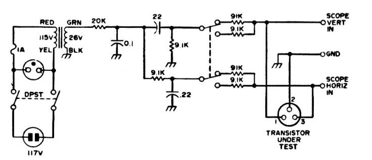 Este circuito fue encontrado en una documentación americana de los años 80. Se destina a la prueba de transistores y SCRs generando señales en cuadratura para visualización de características en un osciloscopio.