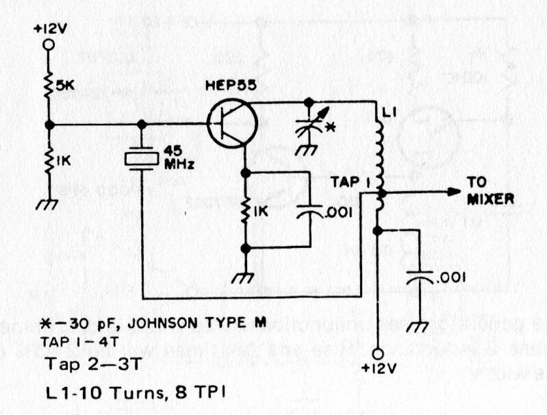 El circuito es de una documentación antigua, pero puede ser elaborado sobre la base de transistores modernos como el 2N2222. El cristal determina la frecuencia, que puede cambiarse cambiando también de las bobinas.