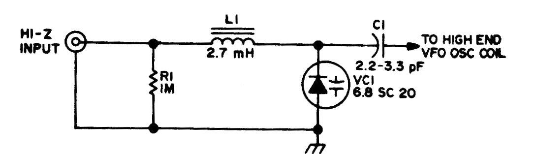 Encontrado en una antigua documentación estadounidense, este modulador de FM utiliza un diodo varactor (como se llamaba el varicap en ese momento). El circuito se puede implementar fácilmente dado el pequeño número de componentes utilizados.