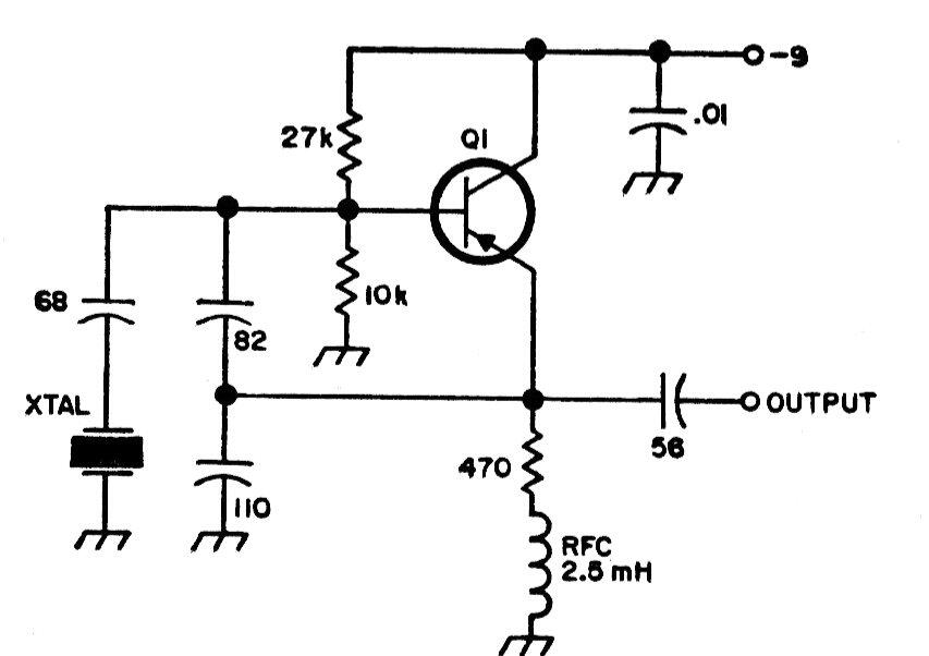 Encontramos este circuito en una vieja publicación de radioaficionados. El modulador es un pequeño altavoz utilizado como micrófono. El cristal de 50 MHz determina la frecuencia y el circuito LC debe estar sintonizado a su frecuencia.