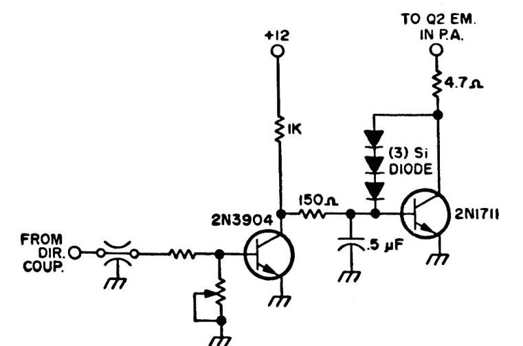 Este circuito de protección para ondas estacionarias se encontró en un manual de circuitos de alta frecuencia y transmisores de los años 80. El circuito se usa con transmisores.