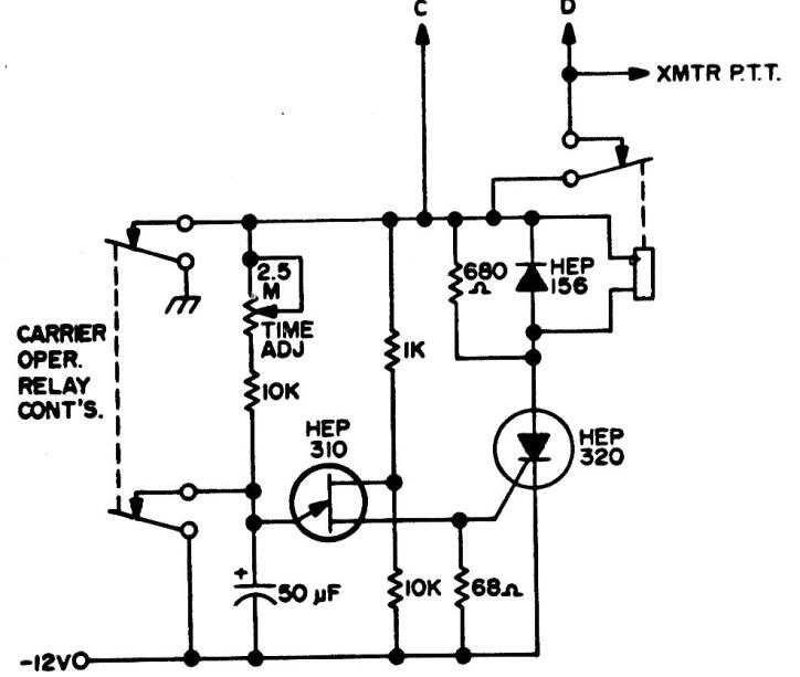 Encontramos este circuito temporizador en una documentación estadounidense de la década de 1980. El circuito utiliza los contactos de relé de 6V para restablecer. El transistor admite equivalentes al SCR. El circuito se utiliza en sistemas repetidores para telecomunicaciones.