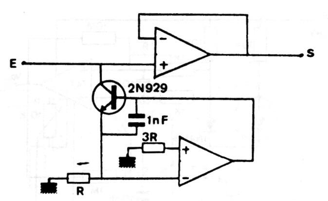 Esta configuración de dos operacionales se encontró en un manual de circuitos de los años 80. Sin embargo, se puede implementar con operacionales más modernos. La fuente debe ser simétrica y el transistor admite equivalente.