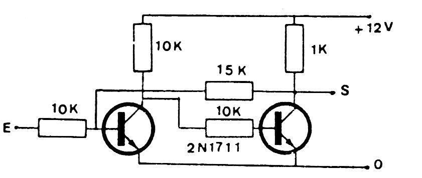 Este disparador utiliza dos transistores de conmutación que aún se pueden encontrar con cierta facilidad. El circuito es de documentación antigua y su propósito es acelerar la conmutación de circuitos lógicos.