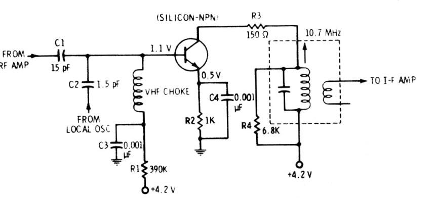 Este es un típico circuito mezclador de radio FM de los años 80. El circuito se encontró en una documentación de la época.