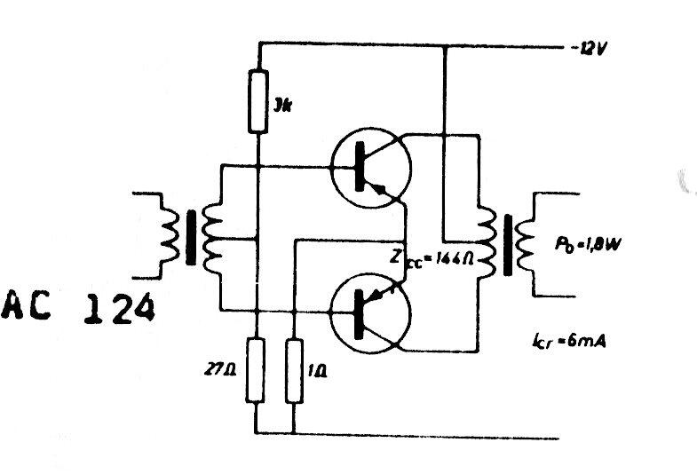 El transistor utilizado en este circuito es poco común hoy en día. Se puede usar AC124 o equivalente, como AC188K y 2N2431. El circuito es de los años 80 y utiliza transformadores.