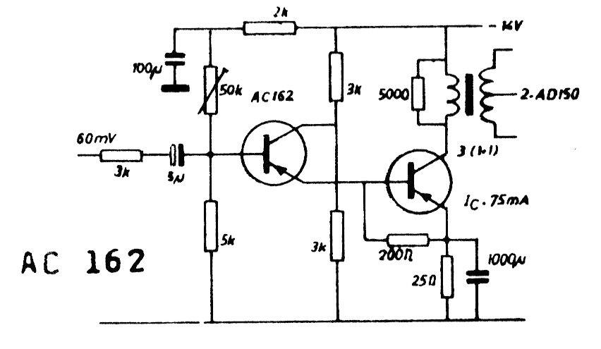 Amplificador con transistores AC162 y AC128 | Haga click en la imagen para ampliar |