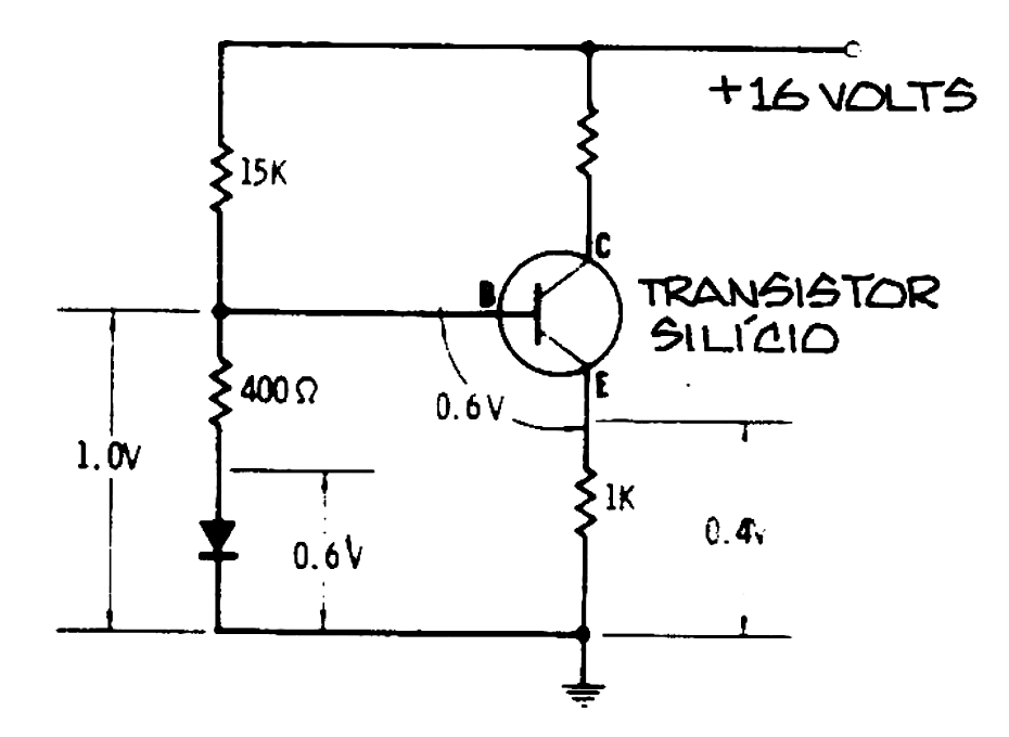 En la figura tenemos un amplificador simple con un transistor de propósito general con compensación de temperatura hecho por un diodo de propósito general. La resistencia de carga puede estar entre 470 ohms y 1k y el transistor puede ser BC548.