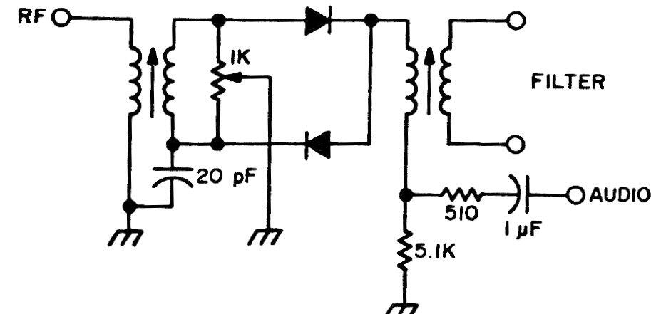 Este es otro circuito modulador equilibrado o balanceado para la transmisión SSB. Este circuito de dos diodos se encontró en una documentación de la década de 1980. Los diodos se usan comúnmente.