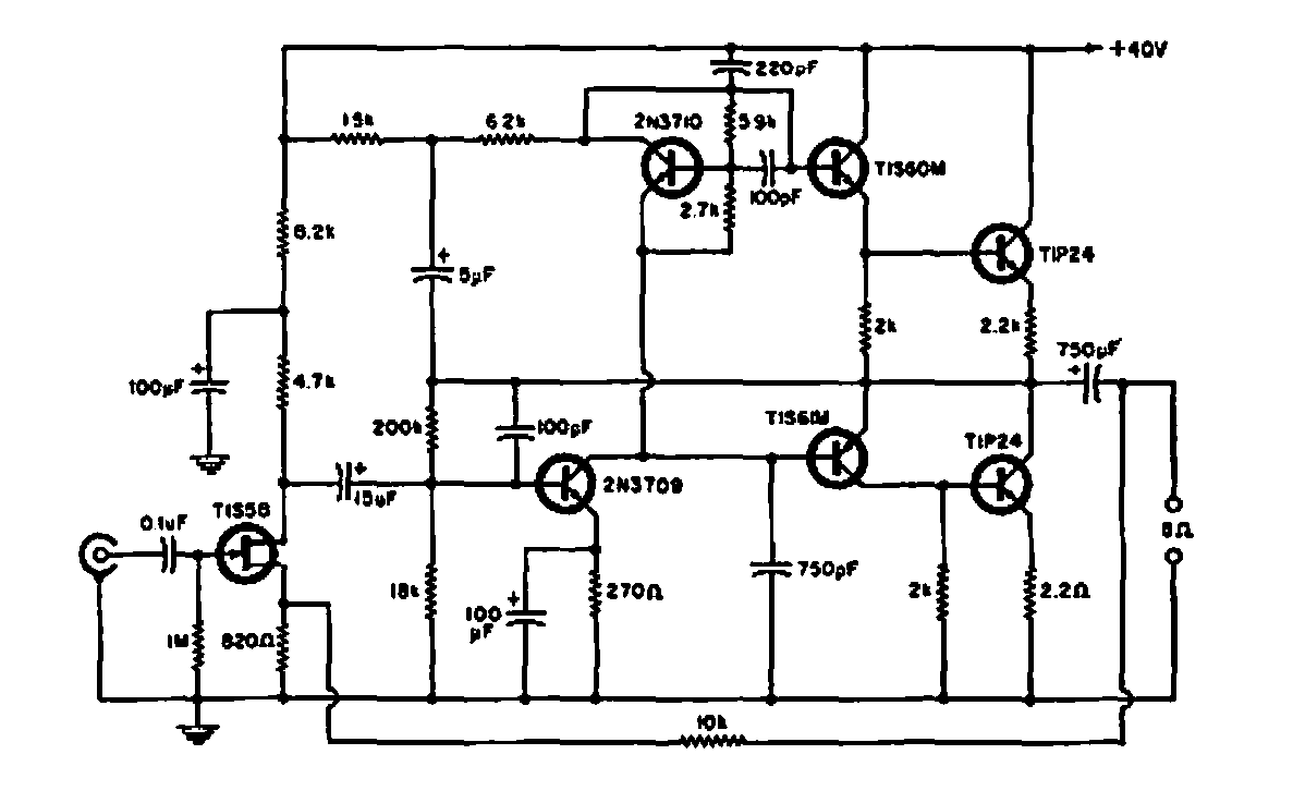 Amplificador casi complementario de 15 W | Haga click en la imagen para ampliar |