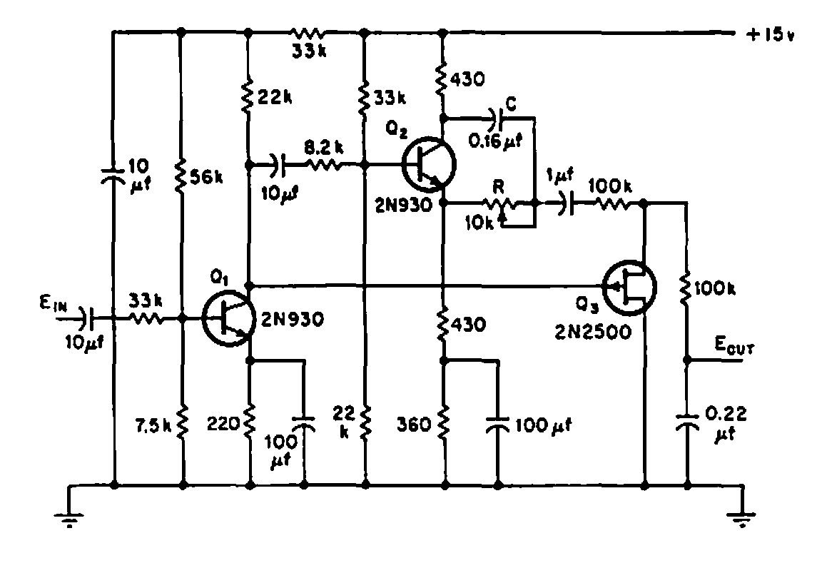 Este circuito es sugerido por la documentación estadounidense de 1970. Utiliza transistores de la época, pero puede implementarse con transistores equivalentes modernos.