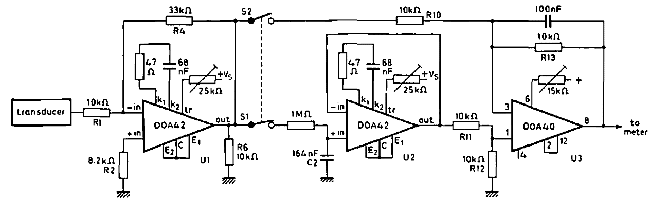 Este circuito es de la documentación de Philips 1960. El circuito se puede aplicar a amplificadores operacionales modernos. La fuente debe ser simétrica.