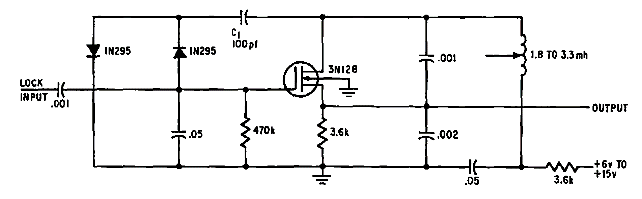 Encontrado en una documentación estadounidense de 1969, este circuito opera a una frecuencia determinada por el circuito resonante.