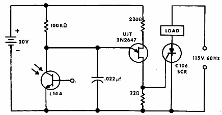 Este sensor de luz altamente sensible se encontró en una documentación de General Electric de 1970. El circuito puede usar el 2N2646 y el fototransistor puede ser de cualquier tipo.
