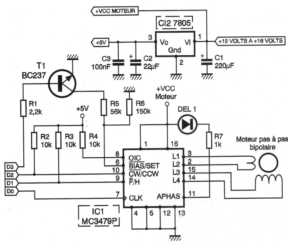 Este control de motor paso a paso fue originalmente diseñado para usar el puerto paralelo de una PC y es bastante simple de ensamblar. Con adaptaciones se puede usar como shield para microcontroladores. El circuito se encontró en la documentación francesa de los años 90.