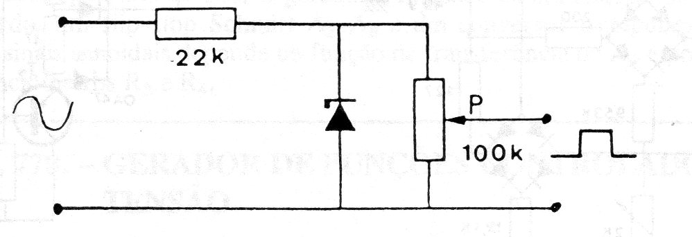 Este circuito modifica la forma de onda de una señal, obteniendo un efecto de corte o sega, como se sugiere en la figura. El diodo zener determina el punto de corte según la amplitud de la señal de entrada. P ajusta la intensidad de la señal.