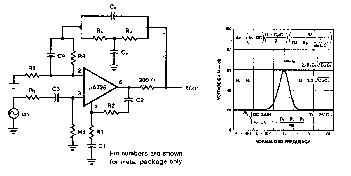 Este circuito se encontró en la documentación en la década de 1980. Las fórmulas junto al diagrama y el gráfico permiten calcular los componentes para diferentes rangos de operación. La fuente debe ser simétrica.