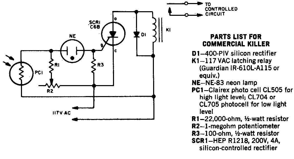 Encontrado en una documentación de los años 70, este circuito se puede implementar hoy con facilidad. El relé es del tipo de corriente alterna.