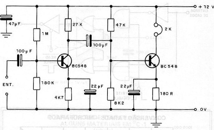 Este es un pequeño amplificador para auriculares magnéticos de alta impedancia. Se pueden usar auriculares de baja impedancia si se agrega al circuito un transformador de salida, del tipo que se encuentra en las radios de transistores antiguas. El consumo del circuito es muy bajo y se debe utilizar una fuente de alimentación con excelente filtrado.